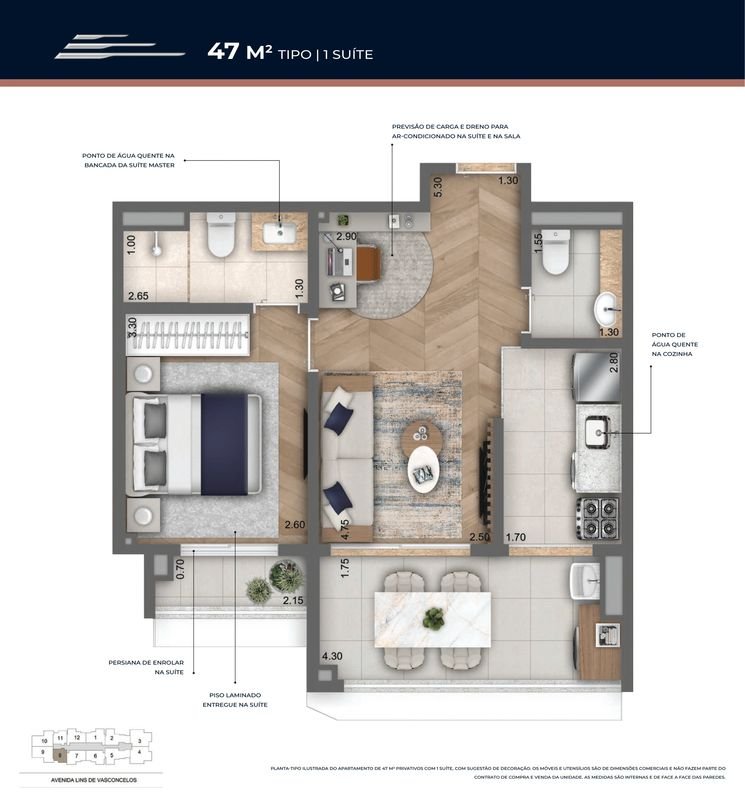 - Área Privativa: 47 m²