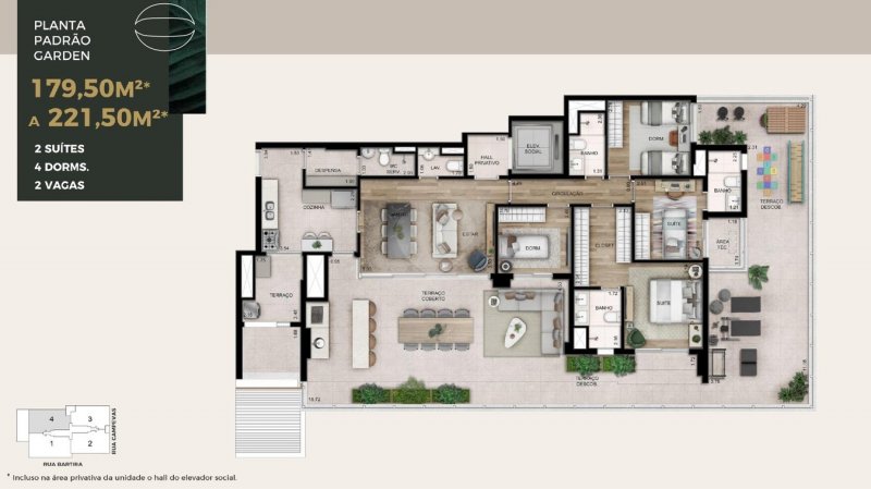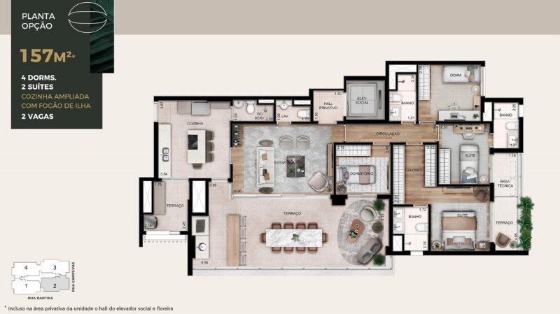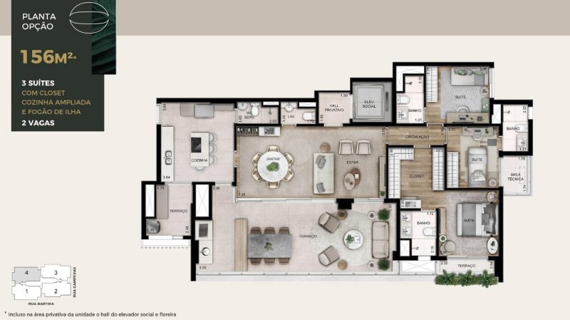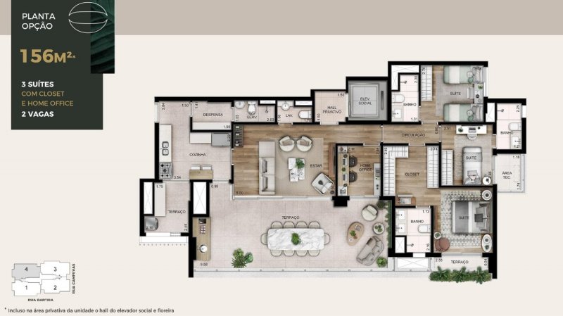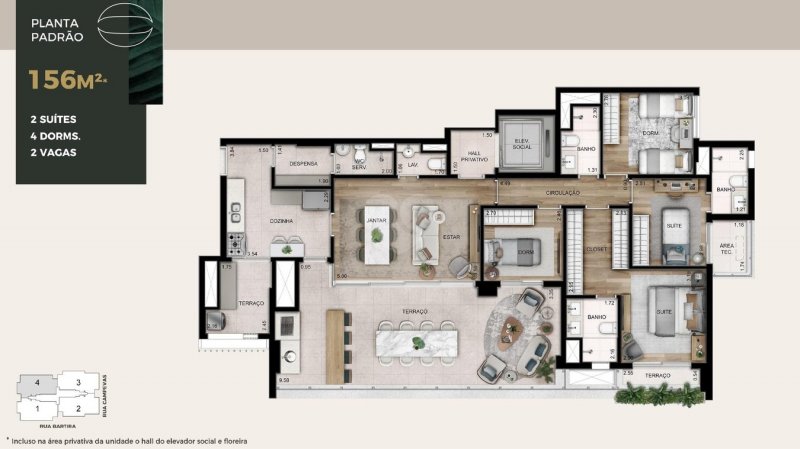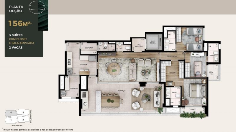 - Área Privativa: 156 m²