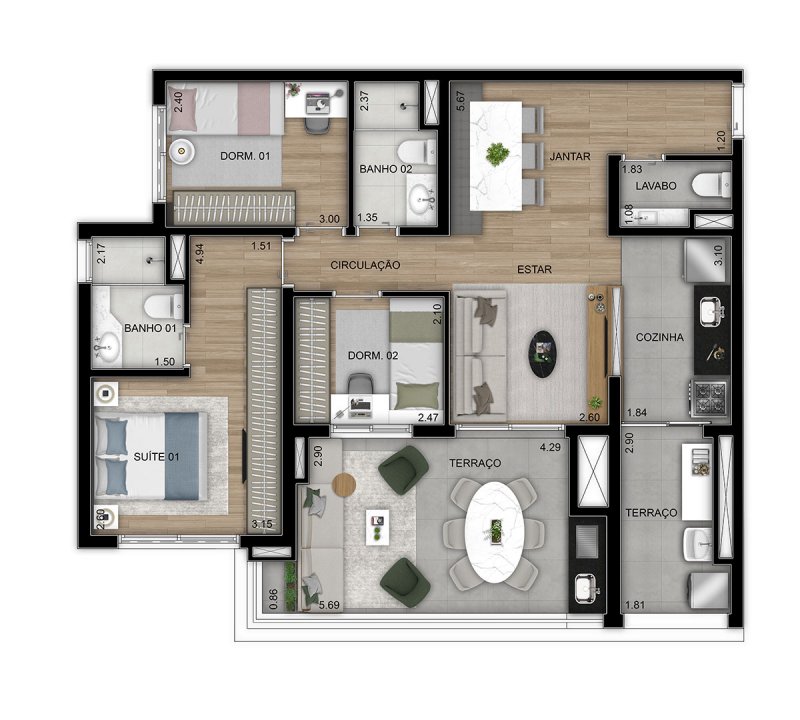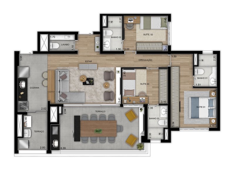 3 Suítes - 108 m²