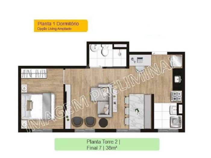Apartamento em Venda com 1 dormitório, 37,95 m²