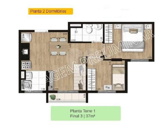 Esse projeto é dedicado para sua família, são apartamentos de 35 a 42m² com 01 e 02 dormitórios com varanda e uma completa área de lazer, tudo isso zelando pela sua segurança de um condomínio fechado.