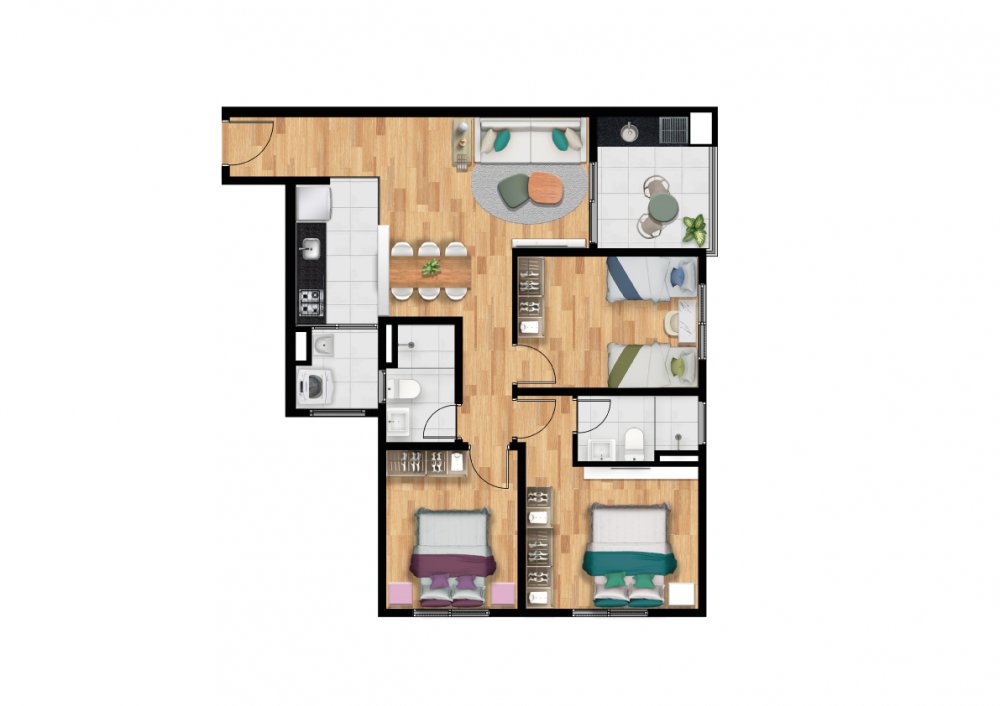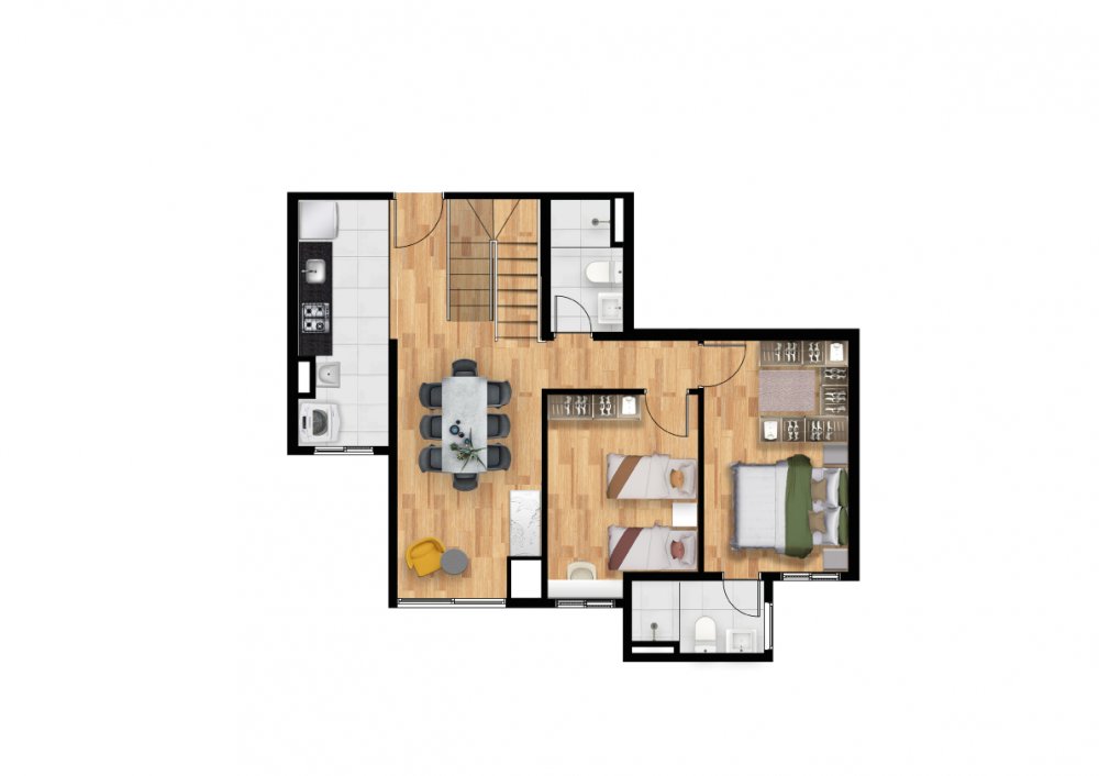 2 Dormitórios com Suíte: 53,74m² - 1 Suíte - 1 Vaga de garagem por unidade.
