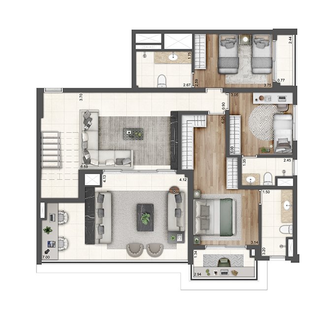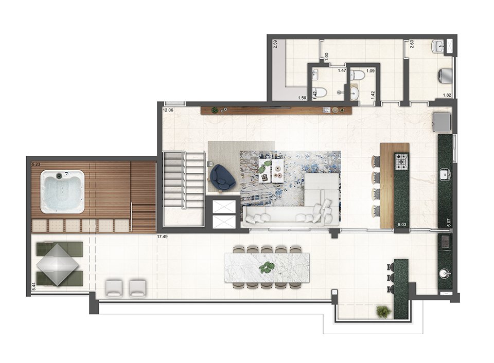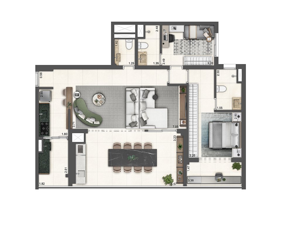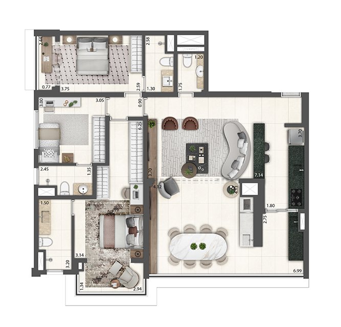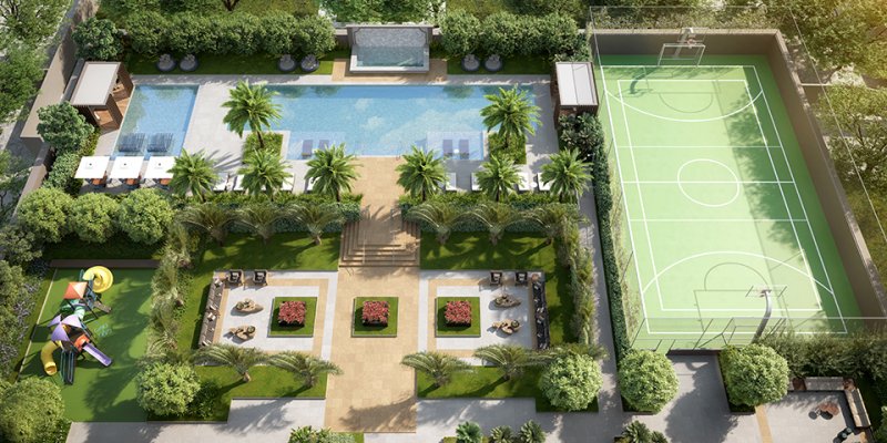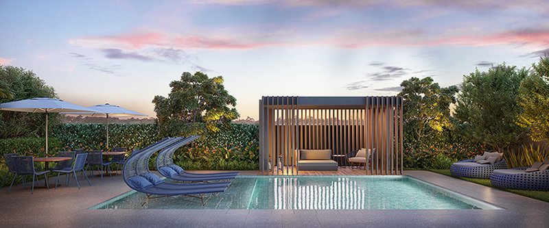 Apartamentos de 84, 111 e 126 m² com lazer de clube e torre única de 43 andares.