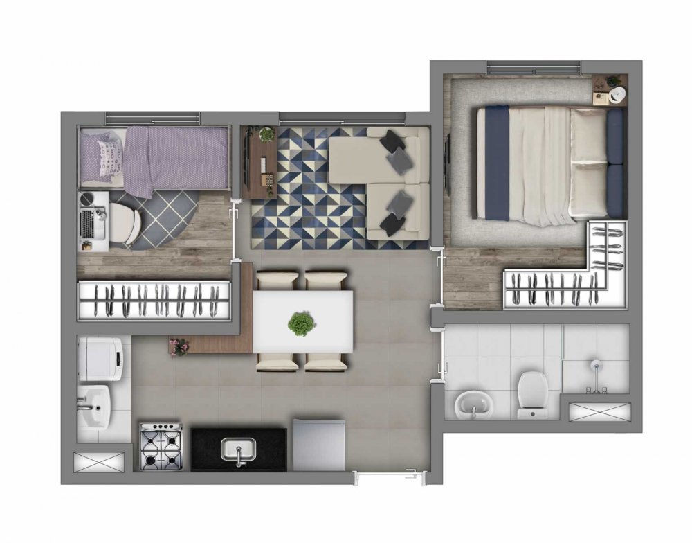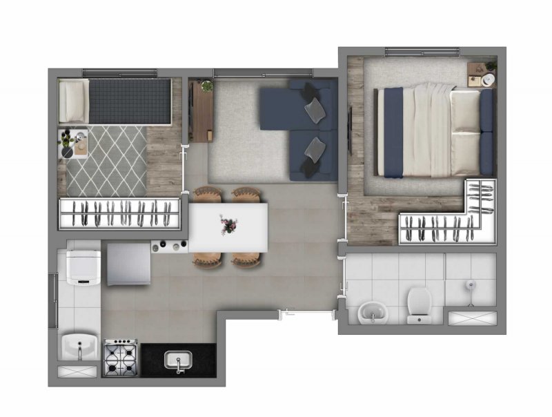 34m²- 02 dormitórios sem varanda e vaga.