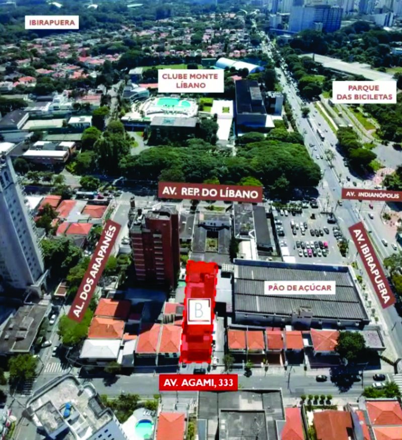 Margeado pela Av. Ibirapuera, Av. Rep. do Libano, Al. do Arapanés.