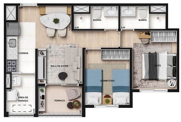 - Área Privativa: 51 m²