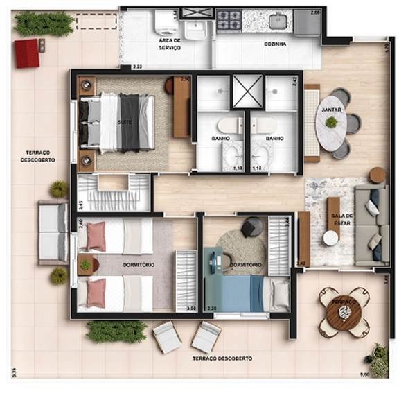 02 unidades Garden d e 6 9 m ² - 01 vaga